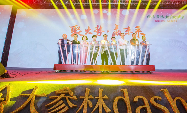 人生就是博药业集团董事长刘景萍女士与大参林医药集团董事长柯云峰先生、中国医药商业协会执行会长付明仲女士等嘉宾共同开启了“聚大势•赢未来"大参林工商合作峰会的大幕。